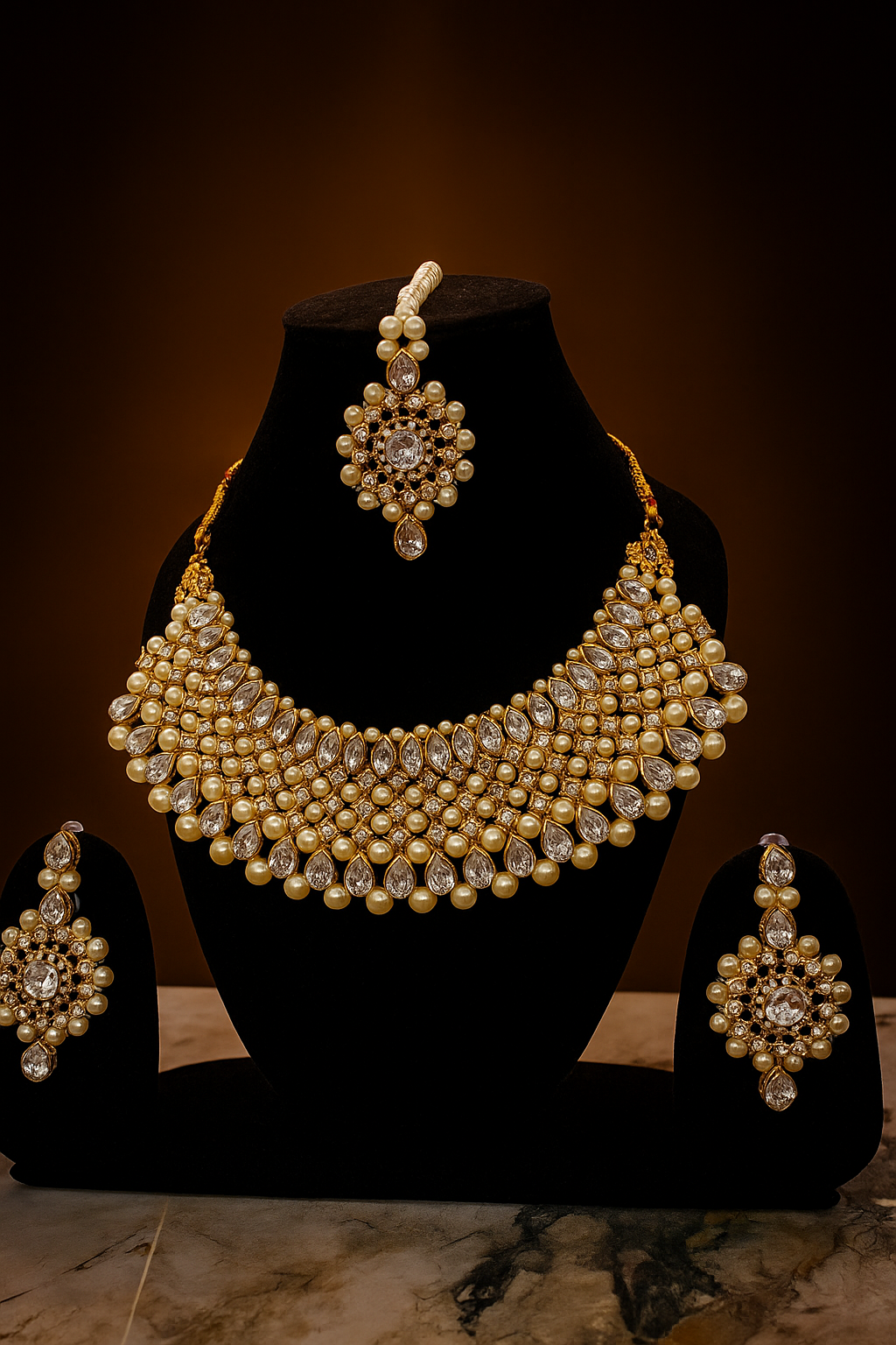 Elega Pearl & Diamond-Look Necklace Set | Premium Party Wear Jewellery for Women – PEARLO’S