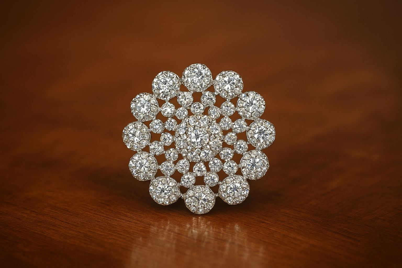 Luxury Floral Cluster Diamond-Finish Cocktail Ring – Premium Bridal & Party Wear